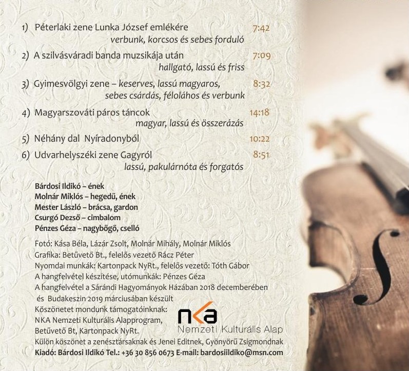 Élő fától a szárazfáig 01 Péterlaki zene Lunka József emlékére02 A szilvásváradi banda muzsikája után03 Gyimesvölgyi zene04 Magyarszováti páros táncok05 Néhány dal Nyíradonyból06 Udvarhelyszéki zene Gagyról